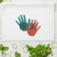 Besoin d'une serviette pour sécher les mains dans la cuisine ? Il n'y a aucune erreur dans ce à quoi devrait servir cette serviette. Chaque extrémité est munie d'un jeu turquoise et rouge d'empreintes à la main avec les mots "serviette de bain" imprimés sur l'ensemble. Accrochez-le sur le réfrigérateur ou près du lavabo où il est certain qu'il sera visible et utilisé pour l'usage prévu. Egalement disponible en terre cuite et en olive.