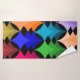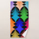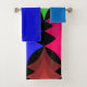 Ce kit de serviettes est doté d'une serviette de bain au design moderne du milieu du siècle avec des étoiles rétro dans les tons rouge, orange, jaune, vert, bleu et violet, d'un linge bleu clair et d'une serviette de bain bleu foncé.