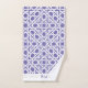 motif géométrique en treillis de style marocain, pourpre et blanc perwinkle. Les serviettes de bain et de la main ont une seule bande blanche où un monogramme ou un nom en police de police correspondante peut être personnalisé.