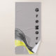 Ajoutez une touche de style et de couleurs à votre décor de salle de bains avec ce set de serviettes de bain aux lignes pivotantes gris et jaune personnalisé. Personnalisez-le en ajoutant votre propre nom, en changeant le style de police, la taille de police et la couleur de police que vous souhaitez.