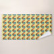 Ces serviettes de bain colorées comportent un motif répétitif d'un coq rouge, jaune, bleu et vert