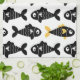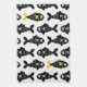 Un motif de poisson moderne et amusant à imprimer en bloc avec des rangées de poissons noirs sur un arrière - plan blanc avec des pops occasionnels de queue jaune. Un cadeau de serviette de thé idéal pour les amoureux de la vie marine! Disponible dans d'autres couleurs