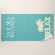 Serviettes de plage en lune de miel pour M. et Mme nouvellement mariés. Elégante idée cadeau de mariage pour les couples mariés. Couleur Turquoise bleue ou arrière - plan personnalisé avec un graphique de palmiers. Téléchargez votre propre image en option. Créez-en un pour lui et elle. Idéal pour les destinations mariages d'été, plage, piscine et plus encore. Ses cadeaux et les siens pour son nouveau mari et sa femme.