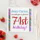 Ce design de serviette en papier à thème d'anniversaire qui attire l'oeil comporte un message comme "Jean-Carlos, nous vous souhaitons un glorieux 71ème anniversaire !", où le nom et le numéro d'anniversaire peuvent être customisés. Des serviettes en papier comme celles-ci pourraient être amusantes à avoir à une fête d'anniversaire.