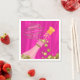 Serviettes en papier pour fêtes d'anniversaire rose et or féminin - look de luxe, fausse soie, arrière - plan rose chaud. Faux brillant ruban de parties scintillant dans le coin supérieur gauche encadre le nom personnalisé, le titre de l'événement, et la date ou tout texte personnalisé que vous souhaitez en noir. On lit actuellement '40e anniversaire'. Bouteille de champagne d'or rose et fausse feuille qui éclate son liège avec des bulles de champagne à débordement en feuille d'or finissent l'aspect chic. Serviettes de papier d'anniversaire de femme élégante. Ils seraient aussi mignons pour les baby showers de filles, la fête de bachelorette, ou tout événement de célébration chic. Coordonner le champagne Save the Date et d'autres fournitures sophistiquées de fête d'anniversaire sont dans notre magasin Zazzle.com/angela65*.