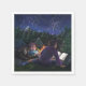 Starry Night art de Traci Van Wagoner imprimer, affiches, accessoires et cadeaux présente notre peinture originale de deux enfants et leur grand chien noir campant sous les étoiles en lisant un livre fantastique autour d'un feu de camp sur des chevaliers et des dragons. La magie de l'histoire tournoie dans le ciel étoilé pour montrer un chevalier et un dragon dans une éternelle danse nocturne des étoiles. Profitez d'un camp d'été en montagne.