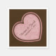 Des serviettes en papier de mariage faites sur mesure en chocolat avec des graphismes d'un grand coeur rose décorant le milieu de la serviette. Personnalisez le texte marron, avec les noms de la mariée et du marié et la date du mariage.