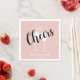 Serviettes en papier rose clair uni de notre collection "Trendy Pink Christmas Color Collection". Jolies serviettes en papier rose pâle, pas seulement pour Noël. Personnalisation possible avec nom / événement et date. Avec des verres à champagne et le mot "à votre santé" au-dessus.