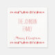 Joyeuses serviettes en papier de Noël avec feuilles rouges et texte changeable - vous pouvez ajouter votre nom de famille, imprimé sur arrière - plan blanc