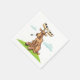 Ce dessin est un orignal de dessin animé. L'orignal est assis sur une pelouse avec un bout d'herbe en bouche. Ce dessin animé d'orignal a l'air superbe sur ce papier serviettes