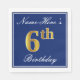 Serviettes En Papier Elégant bleu, Faux or 6ème anniversaire + Nom pers