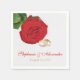 Une élégante serviette en papier avec une belle rose rouge et anneaux mariages. Vous pouvez choisir votre propre texte et vos polices. Des éléments correspondants sont disponibles.