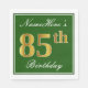 Serviettes En Papier Elégant Vert, Faux Or 85ème Anniversaire + Nom