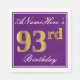 Cette conception simple et élégante de serviette en papier comporte un message comme "AnameHere’s 93rd Birthday" (avec le "93rd" ayant une fausse couleur dorée) dans une zone carré de couleur violette avec un contour de bordure simple. Le nom est dans un texte de type script de couleur blanche, et peut être customisé. Des serviettes comme celles-ci pourraient peut-être être utilisées à une fête d'anniversaire pour quelqu'un qui célèbre son quatre-vingt-treize anniversaire. [~Z0000140]