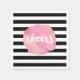 Toast à la bonne vie avec ces jolies serviettes de cocktail. Le design est composé d'un arrière - plan rayé noir et blanc avec un tache d'aquarelle rose et "Cheers" en texte de brosse blanc. Parfait pour le stockage de votre chariot de bar !