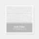 Laissez votre personnalité briller avec ces élégantes serviettes en papier Mariage Geek Chic Binary Code. Avec un code binaire de couleur pâle numéroté arrière - plan et une simple bordure pointillée, cette conception est une façon sobre de montrer votre geekiness avec un style sophistiqué. Facile à customiser, il suffit d'ajouter les détails de votre mariage dans les champs fournis. Cliquez sur le bouton "Customiser" pour modifier les polices ou les couleurs du texte.
