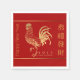 Un simple coq doré sur arrière - plan rouge avec des bordures de tuyauterie dorée et l'accueil en chinois pour cette serviette personnalisable de la nouvelle année 2017 en papier. Produits correspondants : plaques en papier, carte de voeux, carte postale, autocollants, enveloppes rouges... — "Le coq (chinois simplifié : 鸡; chinois traditionnel : 雞/鷄) est l'un des 12 ans du cycle des animaux qui apparaissent dans le zodiaque chinois lié au calendrier chinois. L'année du coq est représentée par le 酉 de caractère de la branche terrestre. Le nom est également traduit en anglais sous le nom de poulet. Le coq est le seul oiseau inclus dans le zodiaque chinois. wikipedia—