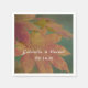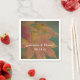 Customisez les couleurs naturelles d'automne épousant les serviettes de papier avec les noms personnels des jeunes mariés et de la date de cérémonie de mariage pour l'usage à votre douche nuptiale de chute décontractée ou chique de septembre, des octobre ou novembre ou heure de cocktail de réception de mariage. Ces serviettes jetables automnales faites sur commande saisonnières comportent une photographie numériquement peinte de nature de feuille coréen orange, rouge et jaune d'érable sur l'arbre avec un arrière - plan de région boisée brouillé par vert.