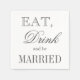 Mangez une boisson et soyez mariés en papier mariage serviettes. Design élégant de typographie de script pour une soirée de mariage classe. Calligraphie élégante manuscrite associée à des polices formelles chic. Couleurs personnalisables en gris et blanc. slogan vintage pour table à manger classique.