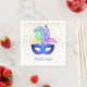 Cette serviette en papier de la taille d'un cocktail standard est présentée avec une impression festive de masque de carnaval Mardi Gras. Montré sur la serviette en papier blanc. Taille standard du cocktail. Customisez cet objet ou achetez tel quel.
