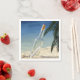 Forfait de 50 serviettes de cocktail en papier blanc avec l'image d'un message dans une bouteille sur une plage de sable blanc et des frondes de palmiers. Voir les dessous de verre en plastique et en papier correspondants. Voir l'ensemble de la collection Shipwreck Napkin dans le FOOD/BEV | Section Linge.