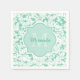 Serviettes En Papier Monogramme Floral Vert Mint Moderne Avec Nom