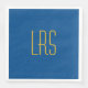 PAPIER DE PARTI CHIC NAPKIN_MODERN, FUN PANTONE COULEUR "LAPIS BLUE" SOLIDE AVEC MONOGRAMME JAUNE 3-INITIAL. COORDONNE AVEC DES PLAQUES DE PAPIER À POINTS ÉCLAIRÉS, DES COUPES ET UN BÂTIMENT, DU PAPIER À ÉPAULE, DU PAPIER EN TISSU ET DU RIBBON.