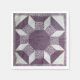 Blocs de courtepointe en motif "spool" violet et blanc. Huit bobines tournent autour d'un centre de violet foncé. Un imprimé de fleurs violettes est le "fil" sur la bobine et aussi la bande de cadrage entre les blocs.