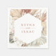 Belles serviettes en papier personnalisées avec un cadre géométrique de feuilles de palmier séchées, de roses et d'orchidées dans un style rustique boho-chic. Le style de police de texte et la couleur peuvent être personnalisés. Conçus pour correspondre à notre collection Bohemian Oasis.