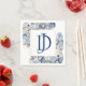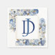 Serviette pour mariage côtier avec motif floral bleu poussiéreux, étoile de mer et coquillages