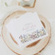 Serviettes en papier pour mariage champêtre de fleurs sauvages avec de jolies illustrations, une palette de couleurs rose tendre, bleu, lilas, jaune et vert, ainsi qu'une police moderne. Le design élégant est parfait pour un mariage champêtre estival sur le thème des fleurs sauvages. Associez-les à tout ce qui fait partie de la collection ELODIE pour un look cohérent.