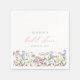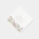 Serviettes en papier pour mariage champêtre avec motifs de fleurs sauvages, une palette de couleurs douce en rose, bleu, lilas, jaune et vert, ainsi qu'une police moderne. Le design élégant est parfait pour un mariage champêtre estival. Associez-les à tout ce qui fait partie de la collection ELODIE pour un look cohérent.