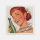 Tête rouge rétro tenant une bouteille de soda avec un drôle de slogan.