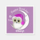 Petit hibou mignon et géant dans son drôle de casquette de nuit rose cerise, assis sur une lune au croissant souriant. Des serviettes en papier adorables pour les enfants ayant un sommeil de fête d'anniversaire et facile à customiser avec votre propre texte sans supplément.