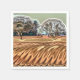 Un design amusant et abstrait de champs labourés et d'arbres dans l'arrière - plan, un paysage rural typique.