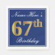 Serviettes Jetables Bleu Élégant, Or Faux 67e anniversaire; Nom person