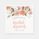 Serviettes à brunch à la nuptiale florale élégantes, à l'aquarelle délicate, avec les mots "Brunch nuptiale" dans le script branché de brosse à pêche, parfait pour une douche de printemps ou d'été. Personnalisez-le avec vos détails en remplaçant le texte de l'espace réservé. Pour plus d'options comme changer la police, la taille du texte/la couleur, l'espacement entre les lettres ou pour contracter ou développer le texte courbe cliquez sur le bouton "Personnaliser". *Veuillez noter que le filigrane Zazzle qui apparaît dans l'aperçu du zoom n'apparaîtra pas sur le produit imprimé final. © Bois de rose et agrumes
