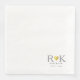 Un design mariage simple, blanc, clair et propre, personnalisé avec les initiales et les noms de M. et Mme, avec un petit coeur d'amour en faux or, et une date spéciale... placé dans le coin inférieur droit de la serviette.