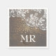serviettes en papier mariage campagnard rustique avec dentelle et points de confettis en bois et en or