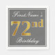 Serviettes Jetables Elégant Grey, Faux Gold 72e anniversaire; Nom pers