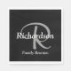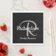 Profitez de ces élégantes serviettes en papier portant votre nom sur votre monogramme dans la typographie de script moderne sur un arrière - plan noir. Les modèles de texte sont fournis pour votre monogramme (gris clair), nom et événement optionnel "Réunion de famille" (en blanc).