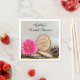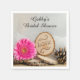 Personnalisez les charmantes serviettes en papier de Fête des mariées Rustic Pink Daisy avec le nom de la mariée à être. Ces serviettes jetables de wedding shower de bois naturel ou de forêt inspiro ont une photographie florale d'une fleur de marguerite rose gerbée, cônes de pin brun, voile de mariée blanc et tranches de bois avec le mot LOVE brûlé sur elle avec un arrière - plan burlap.