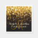 Cette éblouissante serviette en papier mariage saura séduire vos invités. Il présente des orbes lumineuses brillantes dorées qui s'estompent vers un arrière - plan noir subtil. Parfait pour une mariage élégante et classe.