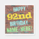 mur en briqueamusantanniversaire heureuxnom personnalisé92 ansquatre vingt douze ans92e anniversairequatre vingt douzièmetexte dapparence désespéré
