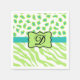 Serviettes Jetables Green White Zebra Leopard Skin Monogram