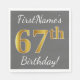 Serviettes Jetables Grey, Faux Gold 67e anniversaire + Nom personnalis