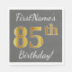 Serviettes Jetables Grey, Faux Gold 85e anniversaire + Nom personnalis