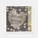 Serviettes en papier mariage rustique avec un cadre boisé romantique, des lumières scintillantes à cordes, un vieux arbre rustique avec un coeur sculpté avec vos noms et votre date mariage.