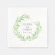 Une serviette en papier mariage contemporaine avec une couronne de laurier aquarelle ouverte dans des teintes vertes délicates. La verdure fleurie est un choix polyvalent qui s'harmonise avec n'importe quelle palette de couleurs que vous envisagez pour votre journée spéciale. Entrez vos détails à la place de l'exemple de texte affiché.