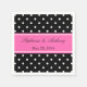 Motif à pois noir et blanc monogrammé. Pois blancs sur des serviettes en papier mariage noir rose chaud.